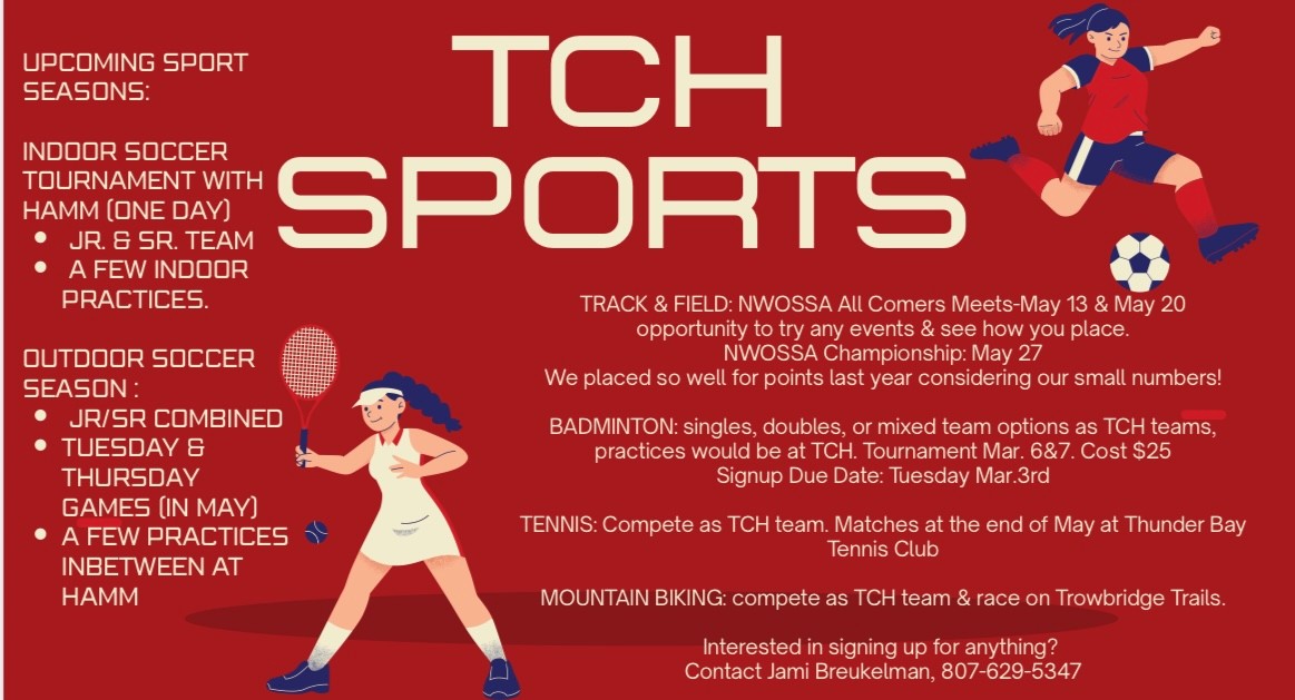Are you a supporter looking to donate to TCH (Thunder Bay Christian High) Please contact the school office at (807) 939-1209 or at emily@tbcs.school.